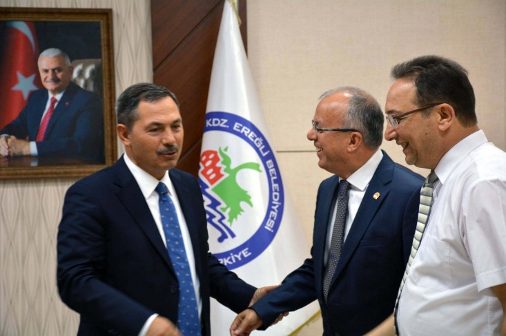 Karadeniz Ereğli Belediyesinde geleneksel olarak düzenlenen bayramlaşma töreni Kurban Bayramının 1.gününde Başkan Hüseyin Uysal'ın makamında gerçekleşti.