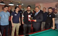 katıldı. Bilardo hakkında şampiyon oyunculardan bilgi alan Başkan Uysal,