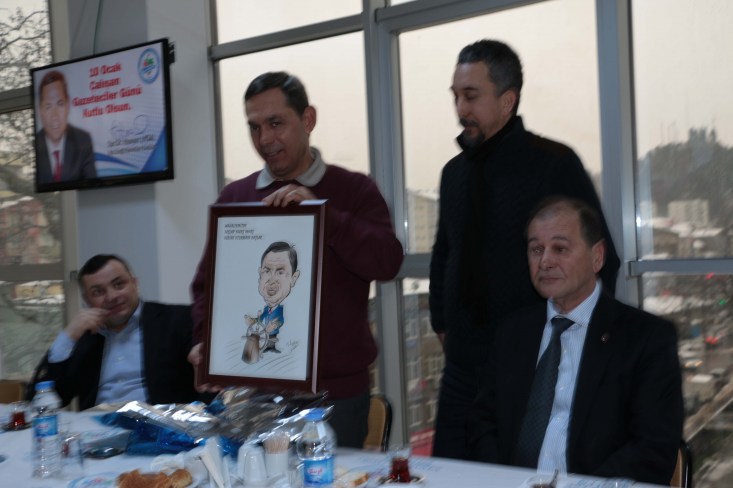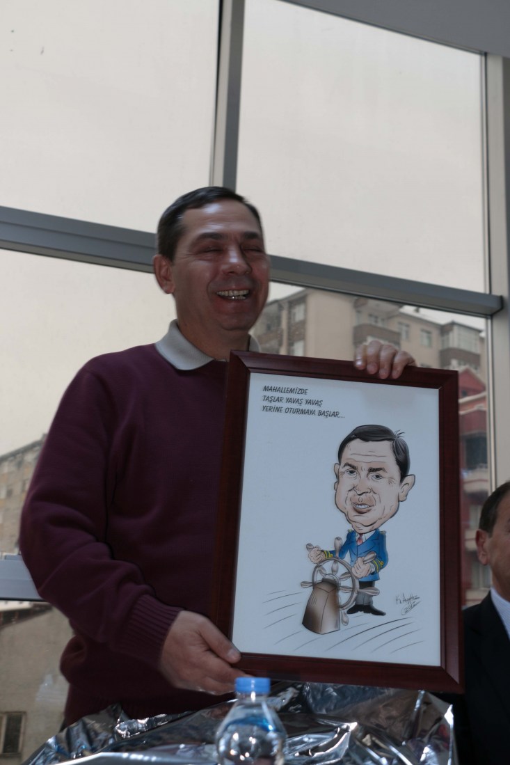 sonunda gazeteci ve karikatürist Kurtuluş Ayyıldız, Başkan Hüseyin Uysal'ın