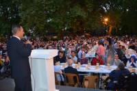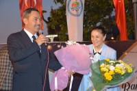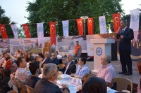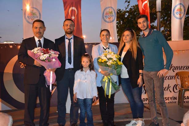 Yaklaşık 2 bin kişinin katılımıyla gerçekleşen iftarın ardından Rehabilitasyon Merkezi yöneticileri Başkan Uysal ve eşi Sevim Uysal'a çiçek takdim etti.