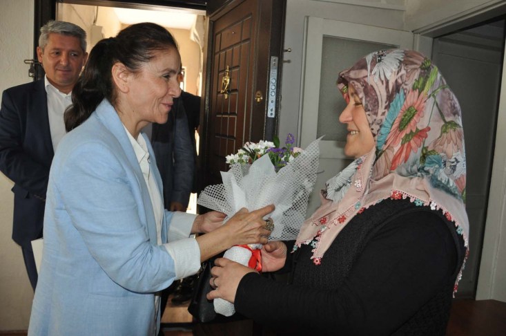 Başkan Uysal, eşi Sevim Uysal ile birlikte şehit anneleri ve eşlerini ziyaret