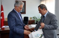 Başkan Uysal Kaymakam Madenoğlu'na çeşitli hediyeler takdim etti.