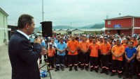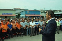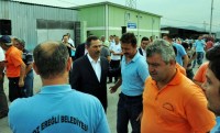 Başkan Uysal yeni haftaya, Başkan Yardımcıları ve daire müdürleriyle Belediye Şantiyesi'nde taşeron işçileri ile bir araya gelerek başladı.
