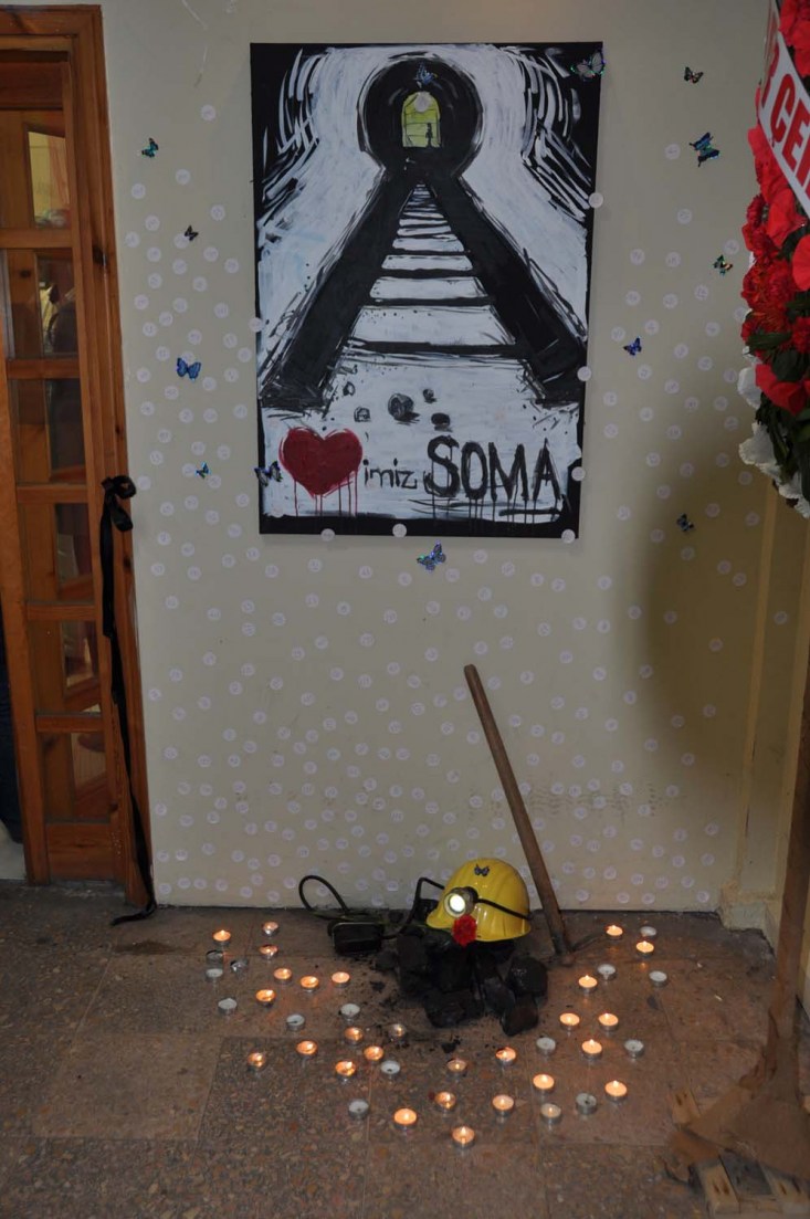 sergisinin girişinde bulunan 'Kalbimiz Soma ' adlı tablo sanatseverlerin ilgi