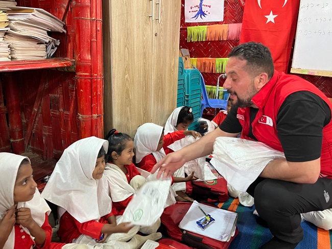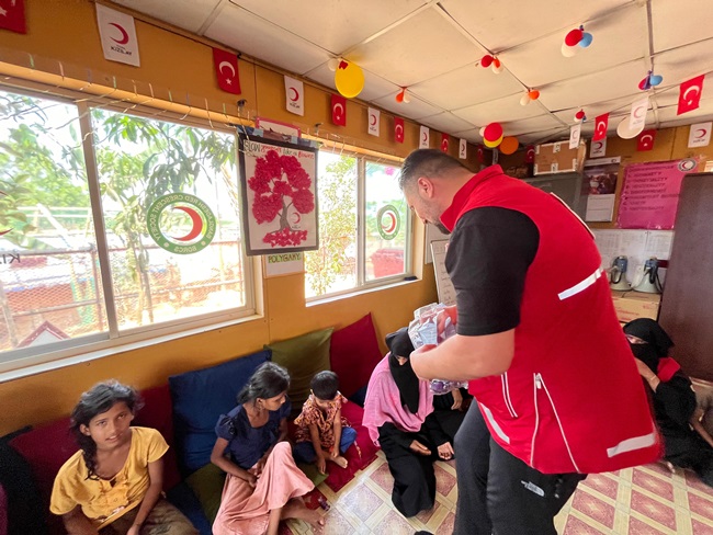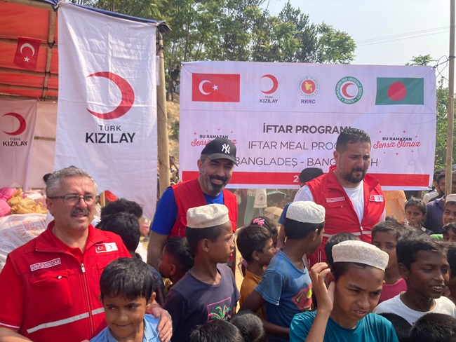 Türk Kızılayı Kdz. Ereğli Şube Başkanı Kürşat Yağız yaklaşık bir hafta önce Ramazan programı çerçevesinde gittiği Bangladeş'in Cox's Bazar kentinde Arakanlı mültecilerin zorlu koşullarda yaşadığı kampları ziyaret ederek ihtiyaç sahibi ailelere yardım götürdü. Türk Kızılayı Genel Merkez Yöneticileri ve Kızılay gönüllüleri ile birlikte Kızılay Köyü yetimhanelerinde bulunan çocuklara düzenlenen iftar programında görev alıp, çocuklara hediyeler dağıtan Yağız, Türkiye’nin Dakka Büyükelçisi Remzi Şen ve yardım gönüllüleri ile de bir araya geldi. Burada yardım faaliyetlerine destek veren Yağız, zorlu koşullarda yaşam mücadelesi veren Arakanlı Müslümanların kendilerini kucaklayarak büyük mutluluk yaşadıklarını anlattı. Yurda döner dönmez Kdz. Ereğli bölgesinde de yardım faaliyetlerine devam ettiklerinin altınız çizen Yağız “Yaklaşık bir haftadır Türk Kızılayı Genel Merkezimizin görevlendirmesi ile Bangladeş'in Cox's Bazar kentinde Arakanlı mültecilerin zorlu koşullarda yaşadığı kamplarda yardım faaliyetlerinde bulunduk. Çocuklar için kurulan iftar programlarında kendilerine çeşitli hediyeler takdim ettik. Bu vesile ile Kdz. Ereğli’de ki tüm bağışçılarımızın yardımlarınıza bizzat kendim oradaki Müslüman kardeşlerimize ulaştırma imkanı buldum. Paylaşmanın ve yardımlaşmanın ne kadar kıymetli olduğunu oradaki Müslüman kardeşlerimize yapılan yardımlarla bir kez daha anladık. Bu vesileyle tüm bağışçılarımıza bir kez daha teşekkür ediyorum. Ülkemize geri dönmemizle birlikte Kdz. Ereğli ve bölgesinde de ayağımızın tozuyla yardım faaliyetlerimize devam ettik. Ramazan Bayramı süresince de yardımlarımız devam edecek. Her ne kadar günümüzün Ebu Cehilleri iş başında olsa da Elhamdülillah biz gönüllere dokunmaya, iyiliğin amiral gemisini yürütmeye devam edeceğiz. İyilik yolunda durmadan, yorulmadan yürümeye devam edeceğiz. Ben bu vesile ile başta Kdz. Ereğli halkımız olmak üzere milletimizin ve İslam Aleminin Ramazan Bayramı’nı canı gönülden kutluyorum. Ramazan Bayramı’nın İslam coğrafyasına ve ülkemize barış, kardeşlik ve huzur getirmesini temenni ediyorum.” dedi.