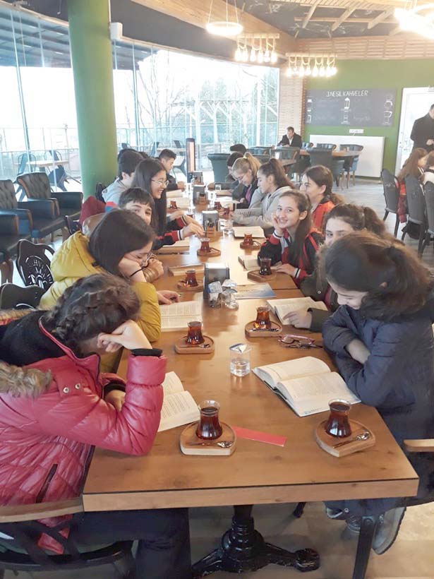 Akçakoca Belediye Başkanı Cüneyt Yemenici, kitap okuma etkinliğini gerçekleştiren öğrencileri ve okul idarecilerini Abant Kahvecisi'nde ağırladı.