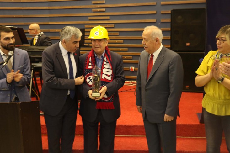 Gecede, Zonguldak Vali Yardımcısı Hüseyin Ergi, Zonguldak Belediye Başkanı Muharrem Akdemir ve Zonguldakspor Kulübü Başkanı Süleyman Caner'in forma hediye ettiği Aziz Yıldırım'a, Genel Maden İşçileri Sendikası Genel Başkanı Ahmet Demirci de madenci heykeli ve baret takdim etti.