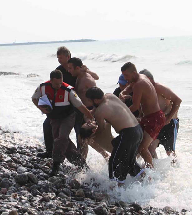 plaja gelen Akın Ö. (18), çocuğu kurtarmak için denize atladı. Ancak üç