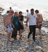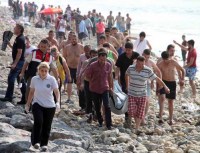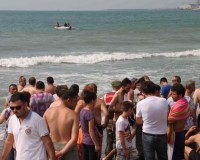 yaklaşık 500 metre ilerisinde denize girdi. Dalgalı ve akıntısı yüksek olduğu