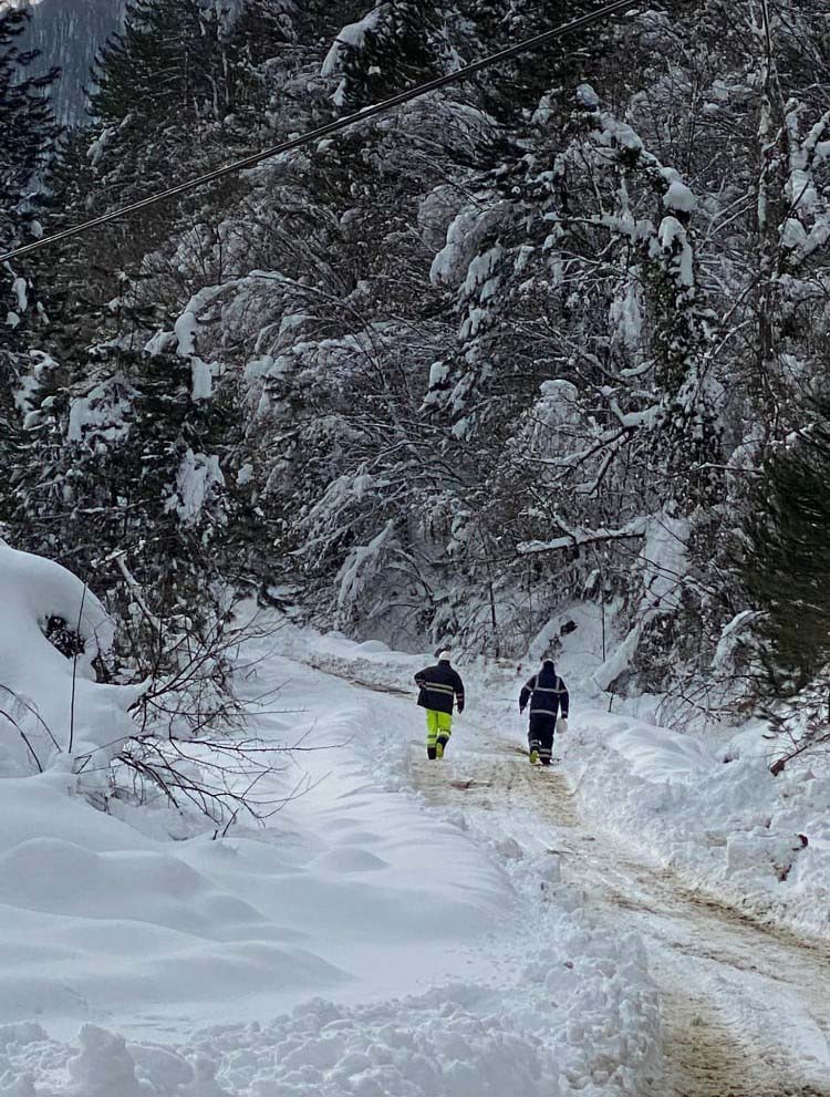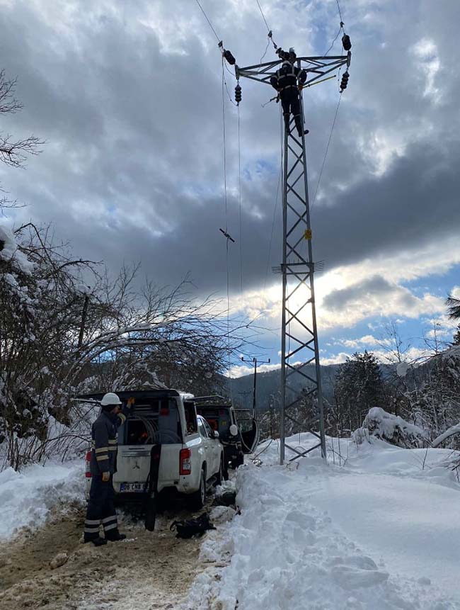 Dondurucu soğukta metrelerce yükseklikteki direklerin üzerinde çalışma yapan ekipler, hat üzerindeki arızaları gideriyor. Yer yer 1,5 metreyi bulan karda arazi ve paletli kar araçlarının ulaşamadığı noktalara ekipler, malzeme ve ekipmanları taşıyarak arızalara müdahale ediyor. Zonguldak’ta özellikle merkez ve ilçede kırsal kesimin enerjisinin sağlandığı trafo arızalarının giderilmesi için çalışmalarını yoğun bir şekilde sürdürüyor.