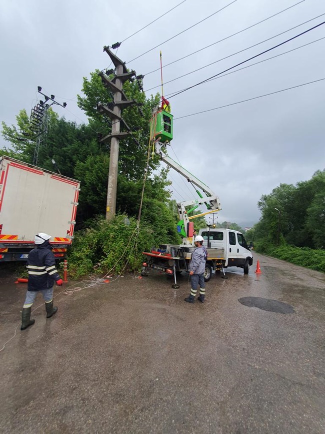 Yağışla oluşan heyelanlar nedeniyle yıkılan direk ve şebeke unsurları hızlıca yenilenirken, yerleşim merkezlerinde yükselen su nedeniyle çarpılma riskine karşı tedbir amaçlı enerji kesintileri yapıldı.