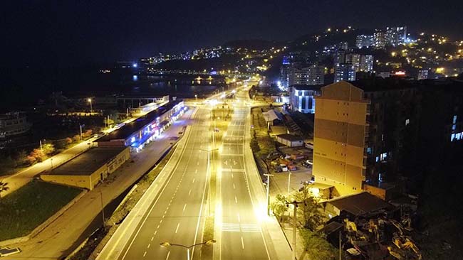 Zonguldak İstanbul karayolu üzerindeki Kozlu kavşağının orta refüj aydınlatma çalışmaları tamamlandı.