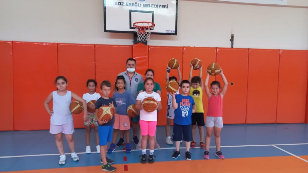 Karadeniz Ereğli belediye Spor Kulübü Salon Sporları Koordinatörü Tanju İke yönetimindeki Basketbol kursları, küçüklerin hem spor yapmalarına olanak sağlıyor, aynı zamanda birlikte eğlenebiliyorlar.