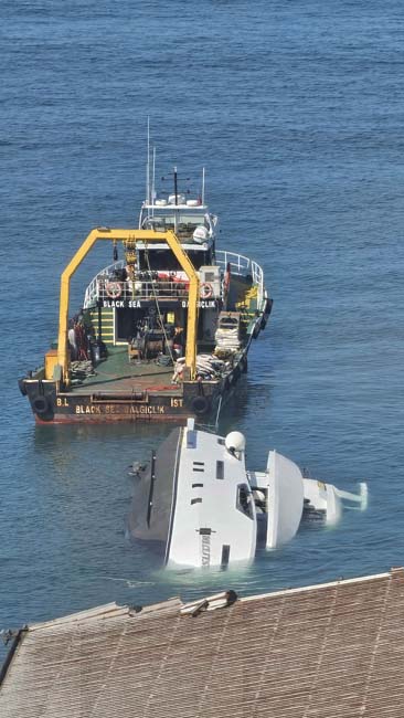 Zonguldak'ın Ereğli ilçesinde beş gün önce 40 milyon liralık lüks yat, denize indirildikten 15 dakika sonra battı. Yatı kıyıya çıkarma çalışmaları ise iş makineleri ve tekneler ile sürüyor.