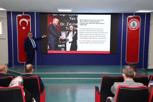 2022 ile 2025 yılları arasında bir değerlendirme yaparak BAP destekli proje sayısının 62’den 194’e, BAP makale destek sayısının ise 0’dan 100’e yükseldiğini belirten Rektör Özölçer, TÜBİTAK 2209-A Programı kapsamında %55 kabul oranı ile 99 projenin desteklendiğini söyledi. Elsevier ve Stanford Üniversitesi iş birliğiyle hazırlanan “Dünyanın En Etkili Bilim İnsanları 2024” listesinde BEUN’dan 8 akademisyenin yer aldığını vurgulayan Özölçer; Zonguldak Teknoparkta firma sayısının 20’den 43’e, yürütülen proje sayısının 108’e ulaştığını ve 227 kişilik istihdam sağlandığını ifade etti. Aynı zamanda öğretim üyelerinin faydalı model, patent başvuruları, TÜBİTAK 1007 projeleri, TÜBİTAK Mükemmeliyet Mührü, AB destekli projeleri ile yılın doktora tezi ödülleri gibi önemli akademik başarılara imza attığını söyledi. Özölçer, bu başarının üniversitenin uluslararası bilim camiasındaki gücünü bir kez daha ortaya koyduğunu ifade etti.