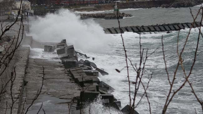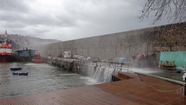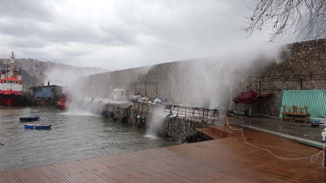 Meteoroloji Genel Müdürlüğü’nün uyarılarının ardından kentte sabah saatlerinden itibaren kuvvetli sağanak yağış ve rüzgar etkili oldu. Liman Caddesi'nde saatteki hızı 40 kilometreyi bulan şiddetli rüzgar nedeniyle boyu 10 metreyi aşan dev dalgalar mendireği aşarak limana girdi. Balıkçı tekneleri, denizde oluşan büyük dalgalardan korunmak için limana sığınırken, açık bekleyen yük gemileri beşik gibi sallandı.