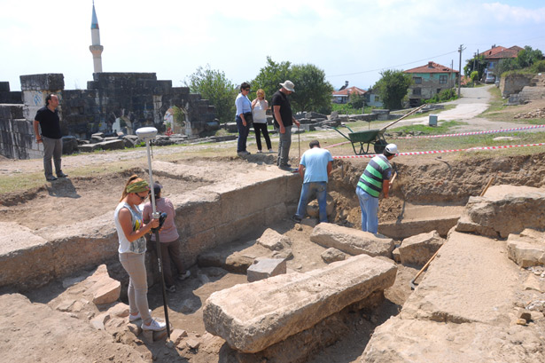 beraber çalışma yaptıkları kazıda, antik tiyatronun bazı alanlarında