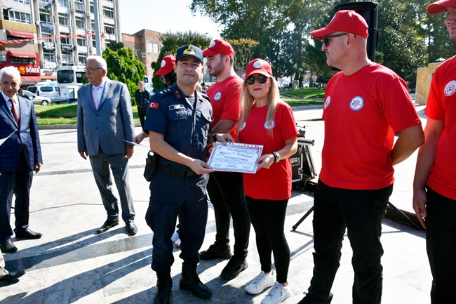 Birazdan kendilerine sertifika ve kimlik kartlarını teslim edeceğimiz gönüllülerimize Belgelerinin hayırlı olmasını, yangınsız ve afetsiz günlerde kullanmalarını diliyorum.