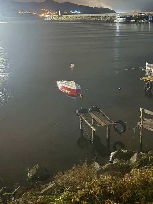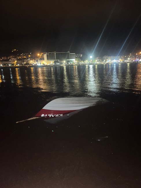 Yaşanan olay sonrasında balıkçı barınağının içerisinde olan bir balıkçı teknesi ise hortum sonucu alabora oldu ve battı.