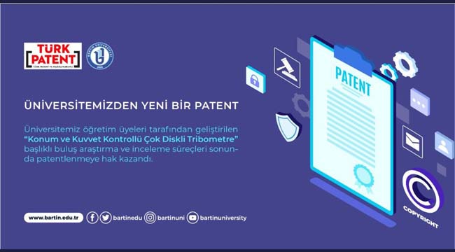 Bartın Üniversitesi öğretim üyeleri tarafından geliştirilen “Konum ve Kuvvet Kontrollü Çok Diskli Tribometre” başlıklı buluş araştırma ve inceleme süreçleri sonunda patentlenmeye hak kazandı.