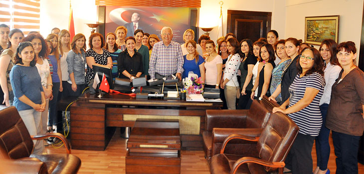 Kdz. Ereğli Belediyesi'nde çalışan bayanlar, Belediye Başkanı Halil Posbıyık'ın yanına giderek babalar gününü kutladı.