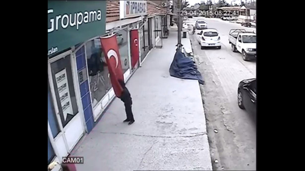 Güvenlik kameraları tarafından kaydedilen çocuğun bayrak sevgisi kısa sürede