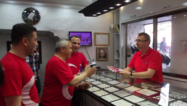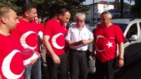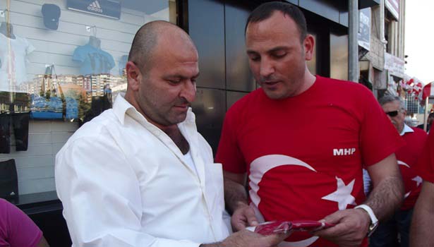 konuşmanın ardından partililer tarafından esnaf ve vatandaşlara Türk Bayrakları