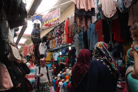 Çarşı Pazar mağaza mağaza bayram alışverişi yapan