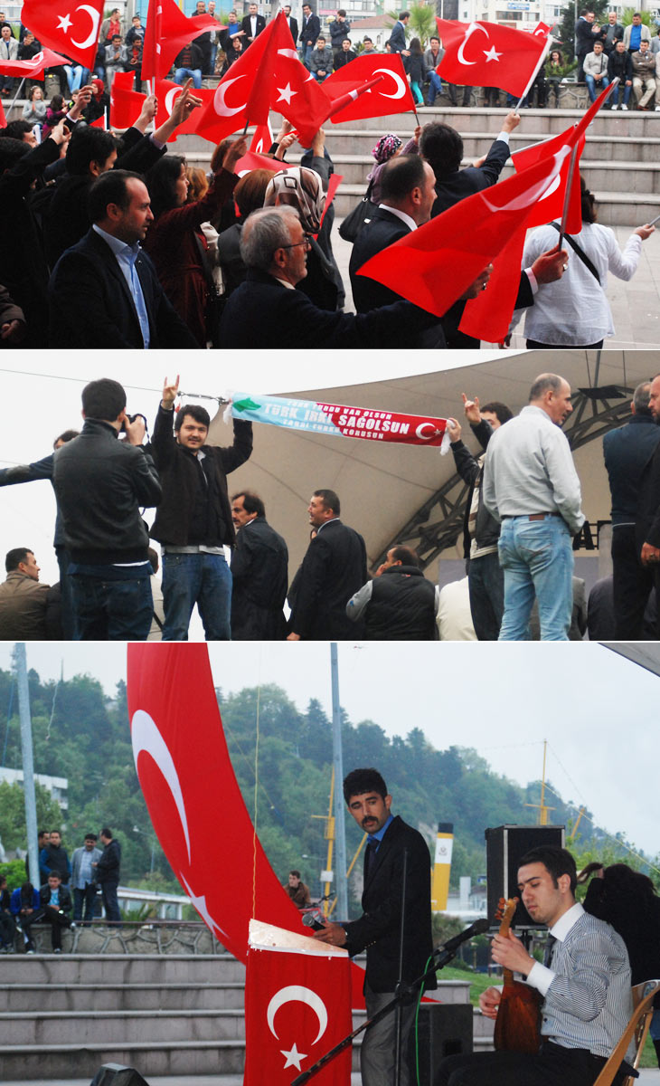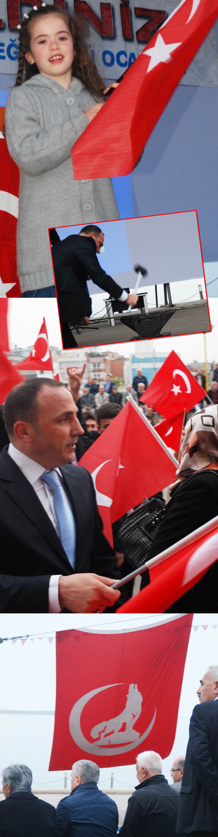 Ardından kürsüye davet edilen MHP İlçe Başkanı Talat Şeker, Türkçülük vurgusu yaptığı konuşmasında, Merhum Alparslan Türkeş'in 3 Mayıs 1944'de bu kutlu yürüyüşü başlattığını hatırlattı. Devletin 1 ve 2 numaralarına da gönderme yapan Şeker; "Bir hukuki problemden dolayı Türk Devletini Avrupa İnsan Hakları Mahkemesi'ne şikayet eden Cumhurbaşkanımız Abdullah Gül, bu memleketin ekmeğini suyunu içen ve bugün Başbakanlık mertebesine ulaşan Recep Tayyip Bey, sizlere inat 'Ne Mutlu Türküm diyoruz' " dedi. Şeker'in bu sözleri, uzun süre ayakta alkışlandı. En çok alkışı, okuduğu şirin ardından minik Canan Dürnel aldı...