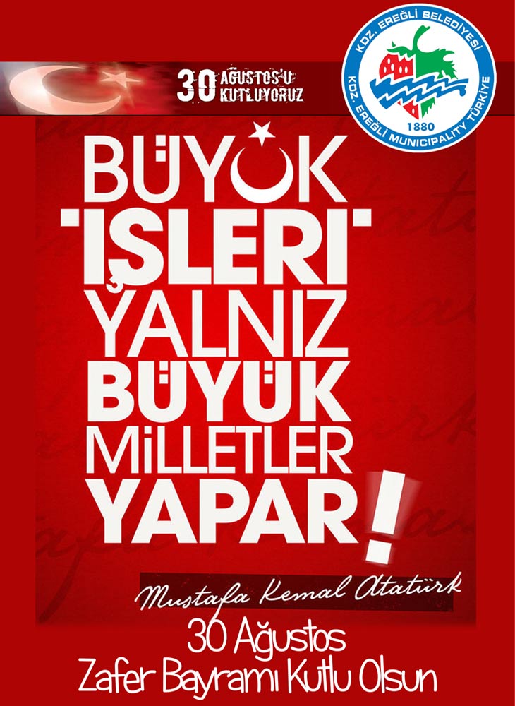 Karadeniz Ereğli Belediyesi, Türk Milletinin 30 Ağustos Zafer Bayramını kutlar...
