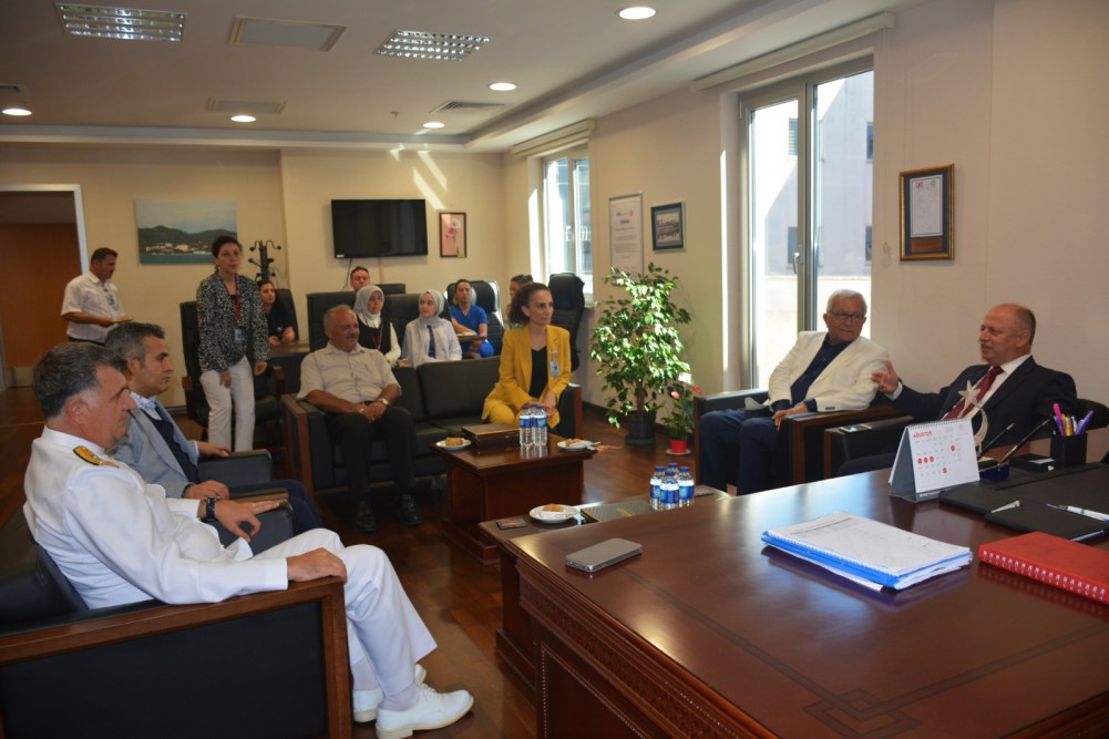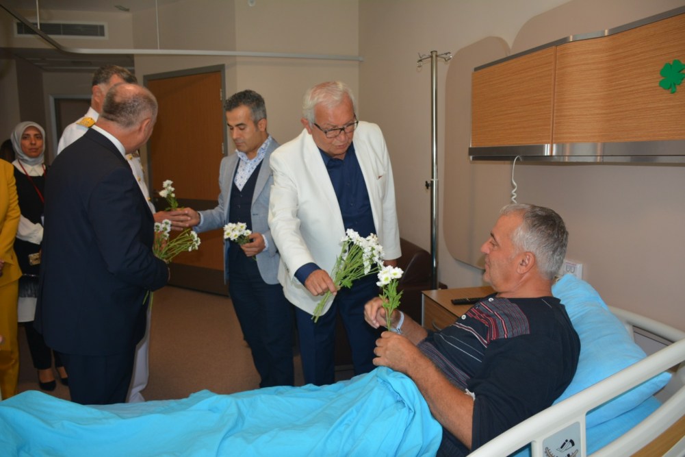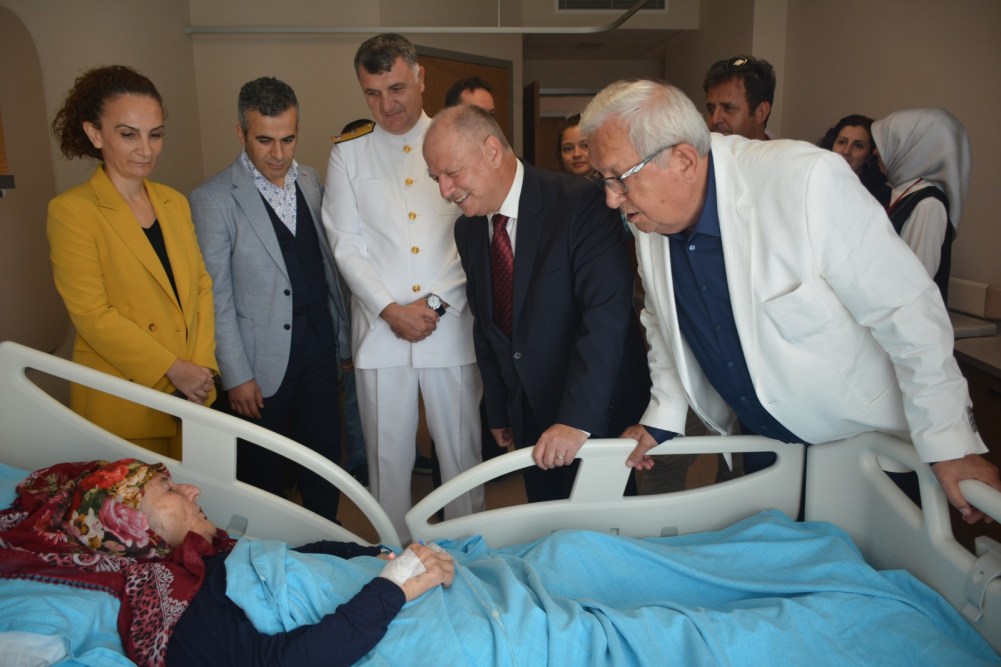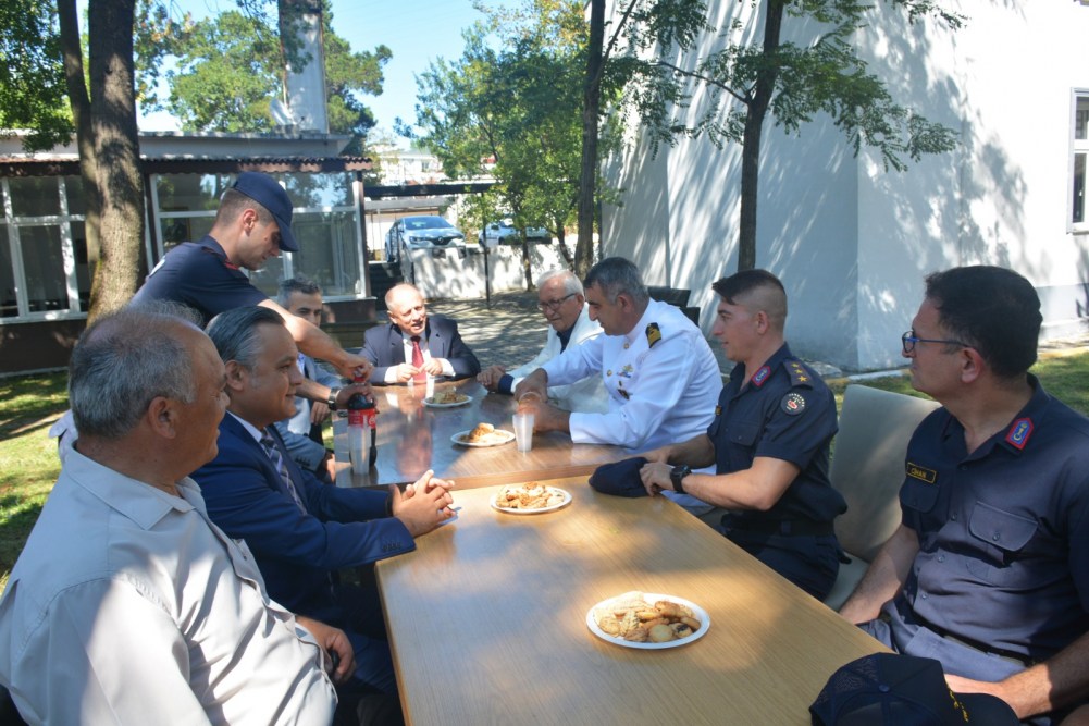 Emniyet Müdürlüğü, Jandarma Komutanlığı, Devlet Hastanesi ve Huzurevine gerçekleştirilen ziyaretlere; Kaymakam İsmail Çorumluoğlu, Karadeniz Bölge ve Garnizon Komutanı Tuğamiral Cemal Özden Yazıcıoğlu, Belediye Başkanı Halil Posbıyık katıldı.