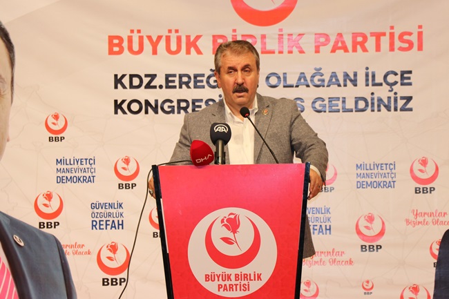 BBP Kdz. Ereğli İlçe Teşkilatının 1. Olağan Kongresi Tatoğlu Kültür Merkezi'nde gerçekleştirildi. Kongre için Kdz. Ereğli ilçesine gelen BBP Genel Başkanı Mustafa Destici, Cumhur hükümetinin tam bağımsız dış politikasından rahatsız olan Millet İttifakı'nı eleştirdi. Altılı masanın altında HDP'nin resmen olmasa da fiilen yer aldığını belirten Destici, CHP içerisinde de HDP siyasetini izleyenler olduğunu söyledi. CHP İstanbul Milletvekili Sezgin Tanrıkulu’nun sosyal medyada SİHA'lar ile ilgili paylaşımını eleştiren Destici şunları söyledi: