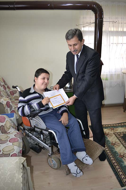 BEDENSEL ENGELLİ ÖĞRENCİ KARNESİNİ EVDE ALDI