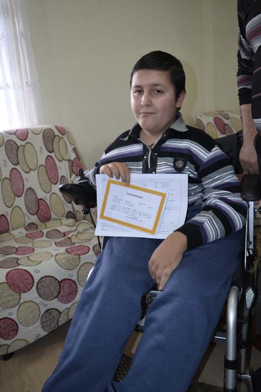 bedensel engelli Furkan Soyyiğit (16), karne sevincini evinde yaşadı. Bedensel