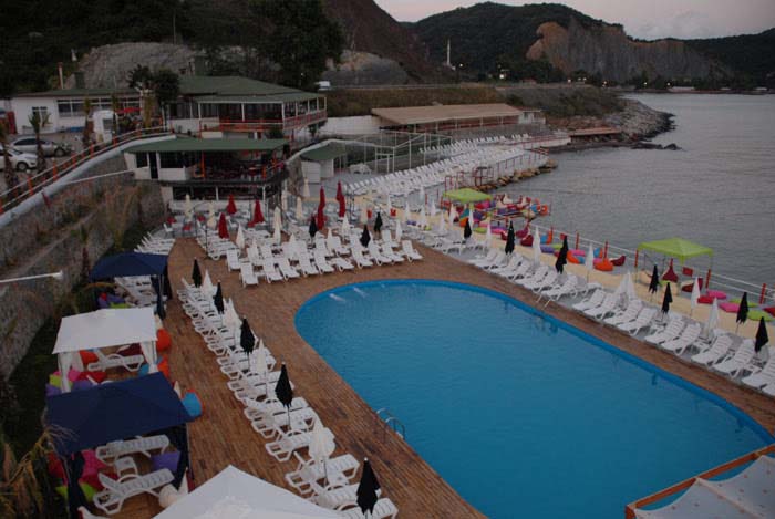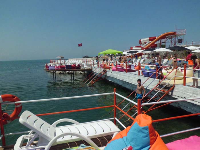 Denizin taşlı olmasi denizi berrak yapar onun haricinde herhangi bi dalga sonucu çamura dönebiliyor.Bu yüzden birazda olsa taşlı kalınması tarafındayız.Aqua park havuzun küçük olması kaydırak standartlarına göre yapılmaktadır.Kaç yüz defa kaymama rağmen bi defa bile duvara toslamadım.Turizme katkı madem niye ücret alınıyor diyen arkadaş.Giderleri devlet ödemiyor özel mülk olduğun için.Kesinlikle gitmeyin diyenlerde eleştiri yapabilirsiniz ama sadece eksi yönlerini ele alıp kesinlikle gitmeyin derseniz insanların kazanclarina engel olabilirsiniz.