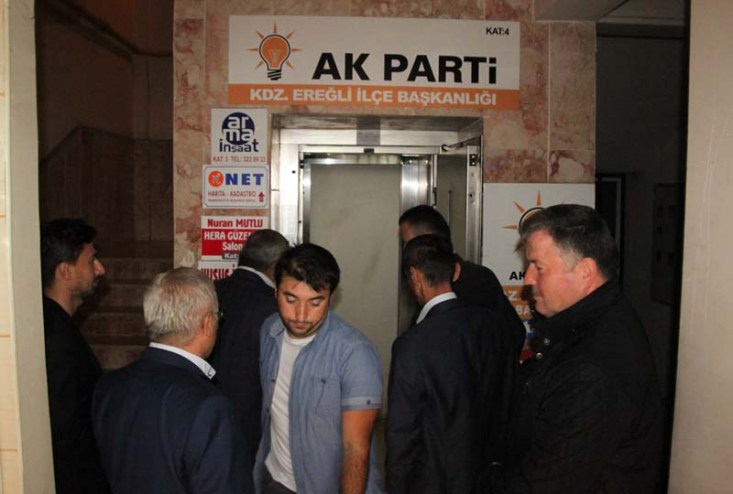 Meclis Üyeleri Zeki Ergün ve Rıza Üstün ile birlikte parti binasına gelen