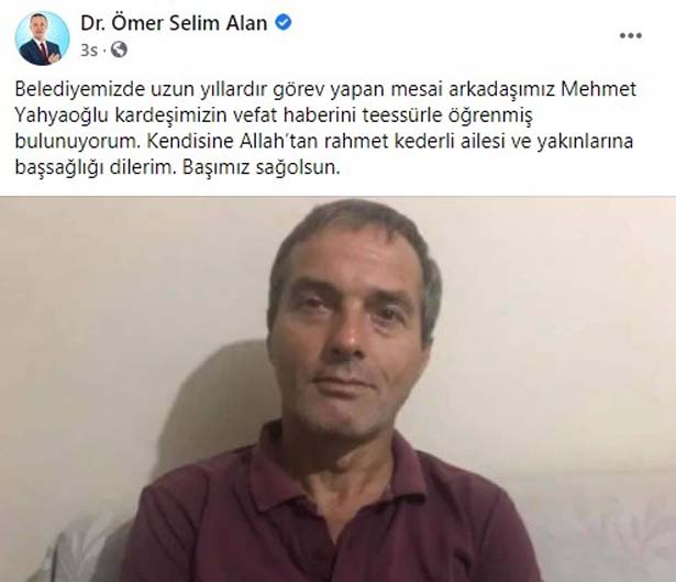 Yahyoğlu'nun belediyede temizlik işçisi olarak çalıştığı ve ölümüyle ilgili olarak da intihar şüphesi üzerinde soruşturma sürüyor. Belediye Başkanı Ömer Selim Alan Mehmet Yahyaoğlu'nun ölümüyle ilgili sosyal medya hesabından "Belediyemizde uzun yıllardır görev yapan mesai arkadaşımız Mehmet Yahyaoğlu kardeşimizin vefat haberini teessürle öğrenmiş bulunuyorum. Kendisine Allah’tan rahmet kederli ailesi ve yakınlarına başsağlığı dilerim. Başımız sağ olsun" paylaşımında bulundu.