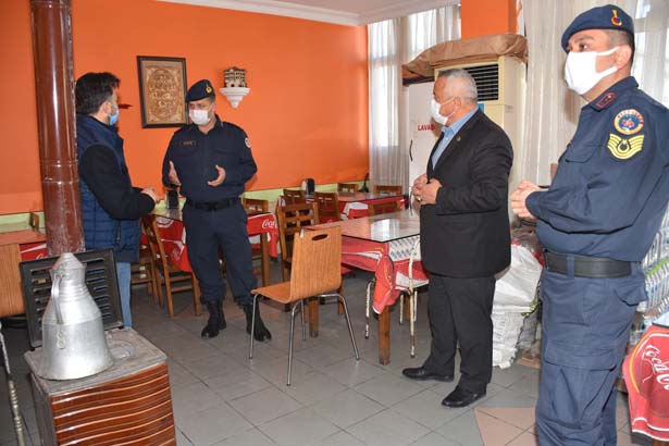 Zonguldak’ın Ereğli ilçesine bağlı Ormanlı Beldesi’nde Belediye Başkanı Bayram Başol, Kdz. Ereğli Jandarma Bölük Komutanı Jandarma Üsteğmen Bayram Dündar ile birlikte yüzde 50 kapasite ile faaliyete başlayan lokanta ve kafelerde denetimler yaptı.