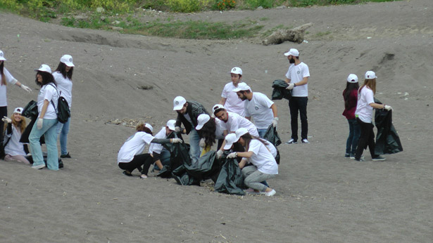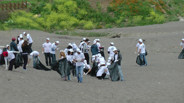 Düzce Üniversitesi Akçakoca Turizm İşletmeciliği ve Otelcilik Yüksek Okulu Öğretim Üyesi Ramazan Kaya ve Araştırma Görevlisi Fırat Atbaş'ın öncülüğünde bir araya gelen 70 civarında öğrenci kumsalları temizledi.