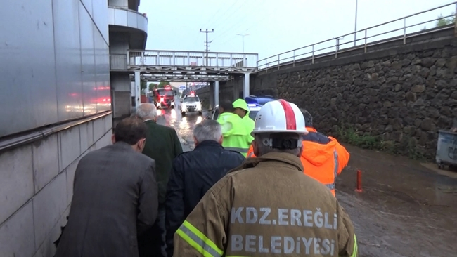 Ereğli’ de sabah saatlerinde etkisini arttıran sağanak yağış sonrasında bir çok ev ve iş yeri sular altında kalırken, Erfeğli belediyesine ait düğün salonu da sular altında kaldı. Haberi alır almaz Kavaklık bölgesine gelen ve bölgede incelemede bulunan Belediye başkanı Halil Posbıyık, doğal afet olayının yaşandığını ve belediyede kriz masası oluşturulduğunu kaydetti.