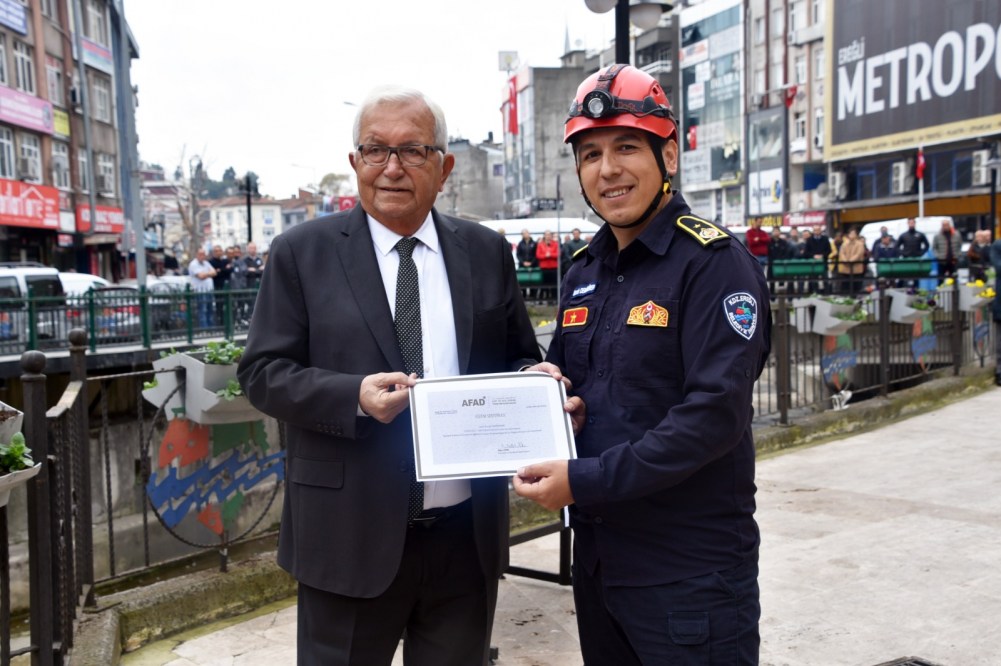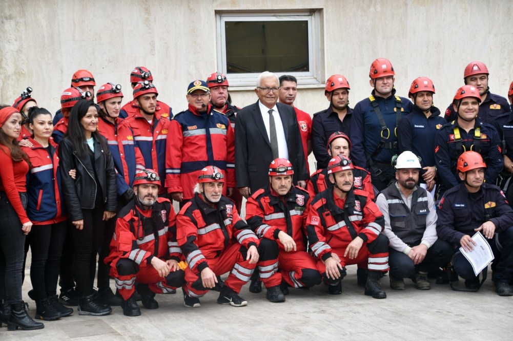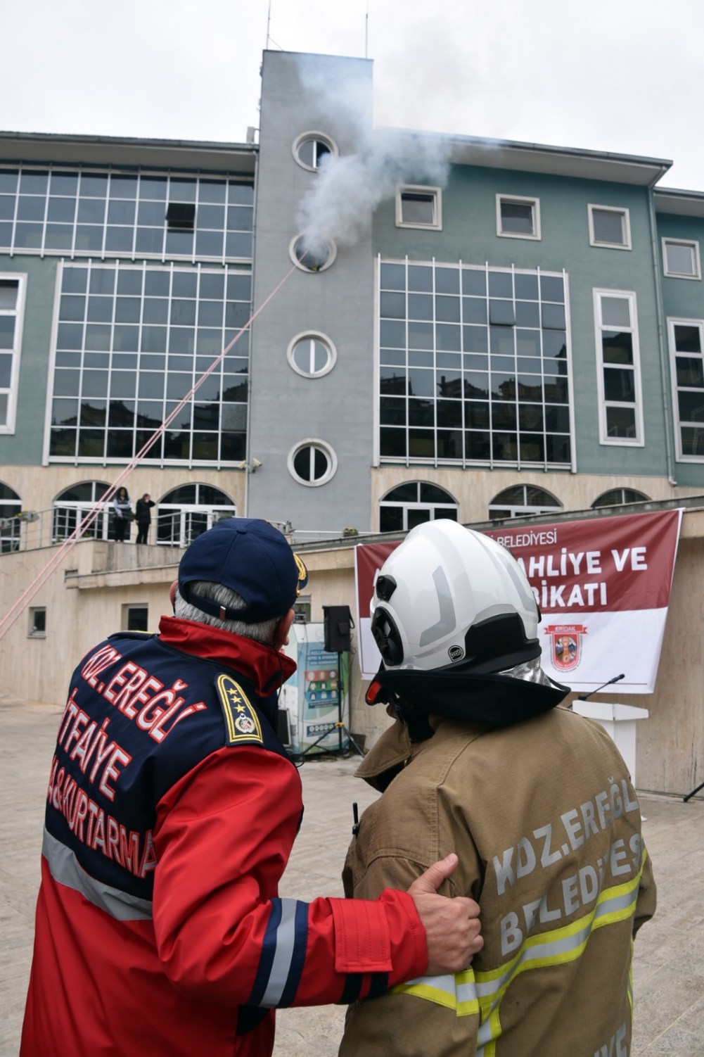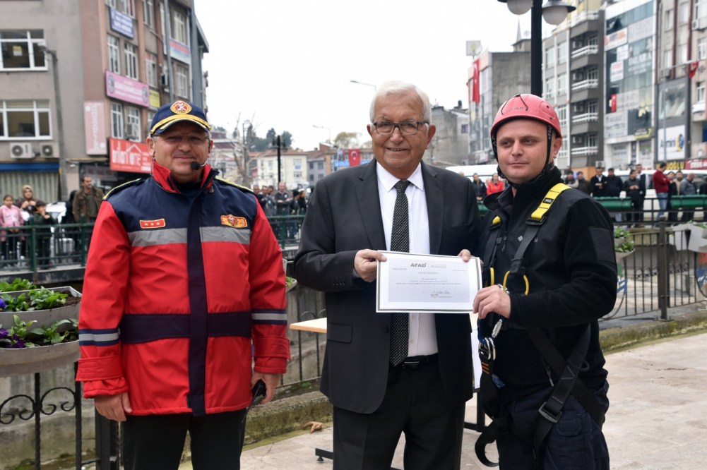 “Karadeniz bölgesinde en eğitimli itfaiye ekibine sahibiyiz. Gönüllü itfaiyecisi, ERİDAK, Sağlık Ekibi, Arama-Kurtarma ekibi, güvenlik güçlerimizle ve bize destek veren emniyet güçlerimizle, 112 sağlık ekipleriyle mükemmel bir ekipsiniz. Sizleri yürekten kutluyorum. Gerçekten aslına uygun bir tatbikatı gerçekleştirmenizden Ereğli Belediye başkanı olarak onur duydum. Arkadaşlarımızın cansiperane koşturmaları, herkesin görevini layıkıyla yerine getirmesi örnek gösterilecek düzeyde mükemmel bir tatbikat oldu. Tabi ki bir ekip çalışması olduğuna inanıyorum. Başındaki müdüründen, en alt kademedeki personele kadar bütün ekibin uyum içerisinde olmaları muhteşem bir olay. Türkiye yangın gruplarının içerisinde temsil edilen, tek ilçe olarak Kdz. Ereğli var. İtfaiye Müdürü Muhammet Ali Ateş buranın yönetiminde. AFAD tarafından 5 haftalık bir eğitim gördüler ve oraya çağrılan tek ilçe de Ereğli. Şimdi kendilerine sertifikalarını dağıtacağım. Deprem, yangın ve her türlü felakete karşı hazırlıklı ve bilinçli hareket etmek için var gücümüzle çalışıyoruz. Bilimin önceliğine inanıyoruz, arkadaşlarımızın yürekliliğine inanıyoruz. Ekip çalışmasına ve eğitime inanıyoruz. İşte bu bilinçli hareketler olduğu zaman ekibin ne kadar başarılı olduğunu bugün izleyerek gördük hep birlikte. Tüm ekibi Ereğli halkı adına yürekten kutluyorum.”