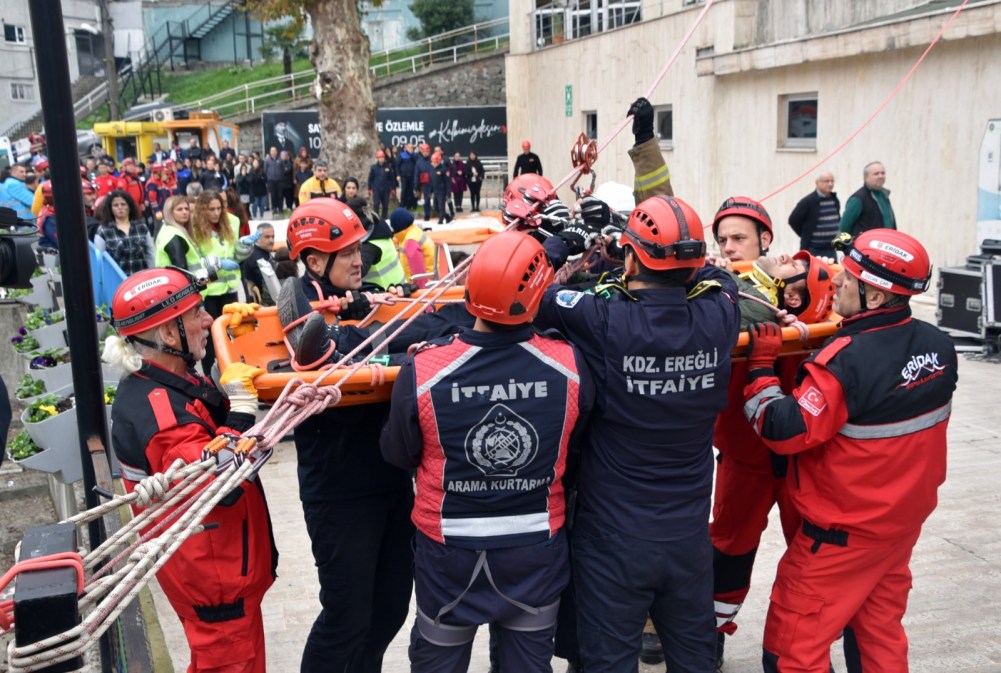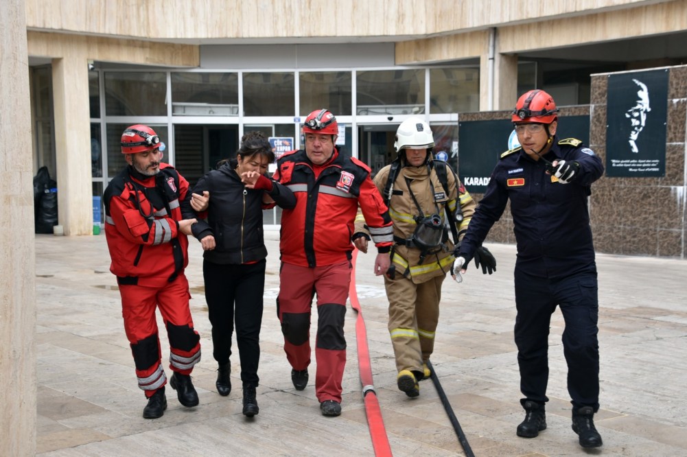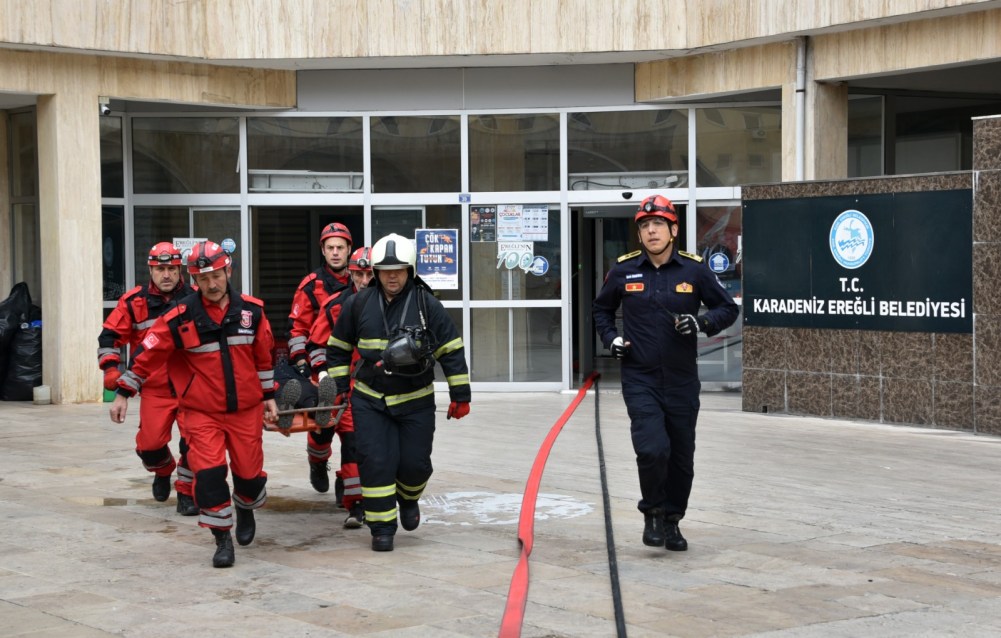 Kdz. Ereğli Belediyesi İtfaiye Müdürlüğü tarafından belediye binasında ‘Acil Durum, Tahliye ve Yangın Tatbikatı’ yapıldı. 80 kişilik ekip senaryo gereği yarım saat içerisinde belediyeyi tahliye etti, yaralı 10 kişiyi kurtararak sağlık ekiplerine teslim etti. Belediye Başkanı Halil Posbıyık, başarılı geçen tatbikat sonrası tüm personeli kutladı.