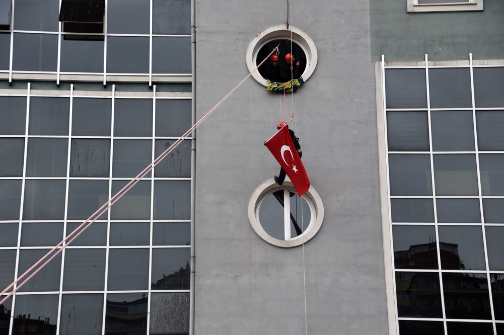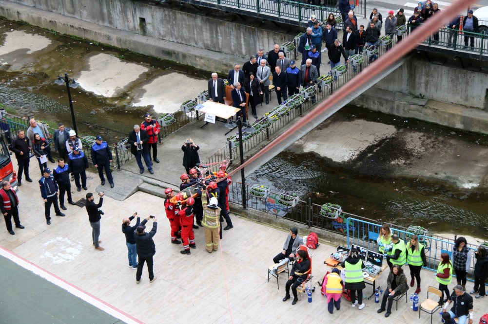 Tatbikatı izleyen vatandaşlar da alkışlarla İtfaiye ekibine destek oldular.