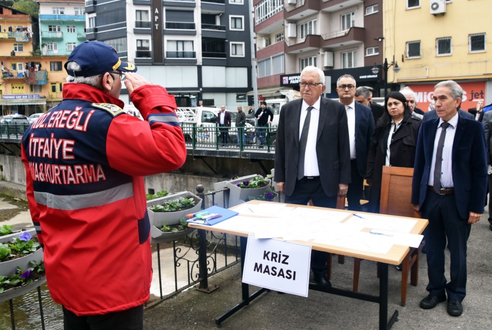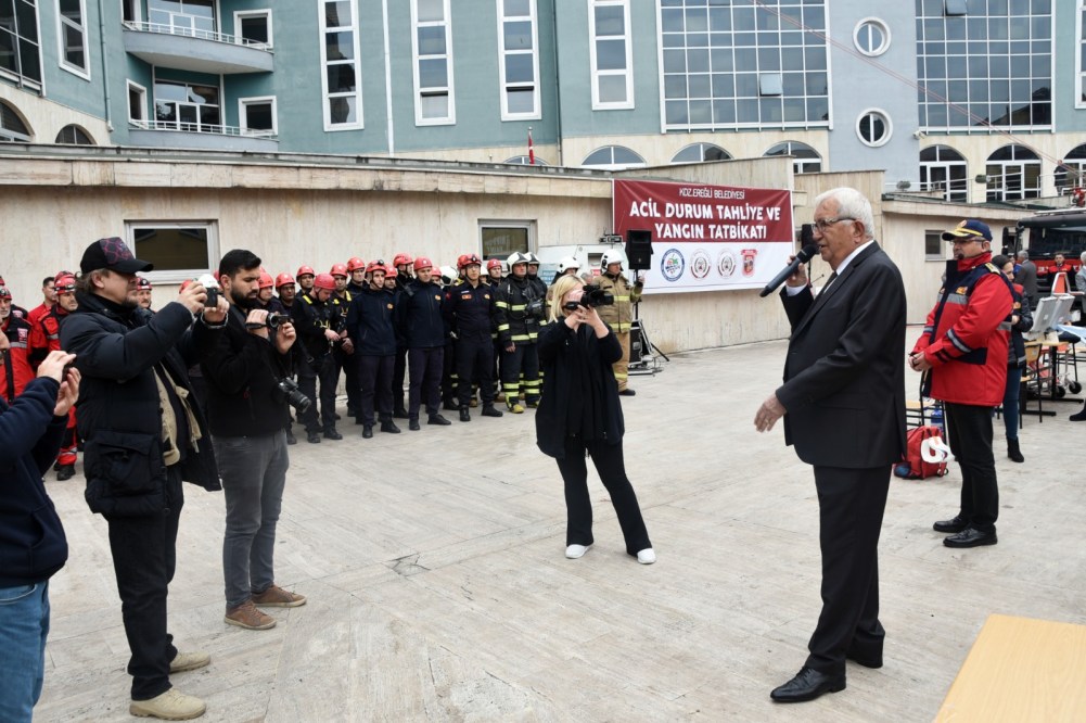 Kdz. Ereğli Belediyesi’nde gerçeği aratmayan ‘Acil Durum, Tahliye ve Yangın Tatbikatı’ yapıldı. Belediye Başkanı Halil Posbıyık, 80 kişilik İtfaiye, Gönüllü İtfaiyeci ve ERİDAK ekipleriyle tatbikatta yer alan personeli kutladı. Posbıyık, “Bölgenin en donanımlı ve tecrübeli itfaiye ekibine sahibiz. Her türlü olumsuzluğa karşı hazır olduğumuzu bugün bir kez daha gördük” dedi.