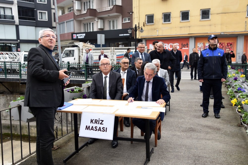 Belediye binasındaki tatbikat sabah saat 10.50’de sirenlerin çalmasıyla başladı. Belediye Başkanı Halil Posbıyık, sirenlerin çalmasıyla birlikte yardımcılarıyla binayı boşaltarak belediye önünde kurulan kriz masasına Başkanlık etti.