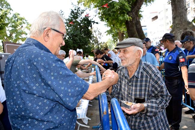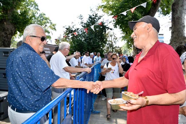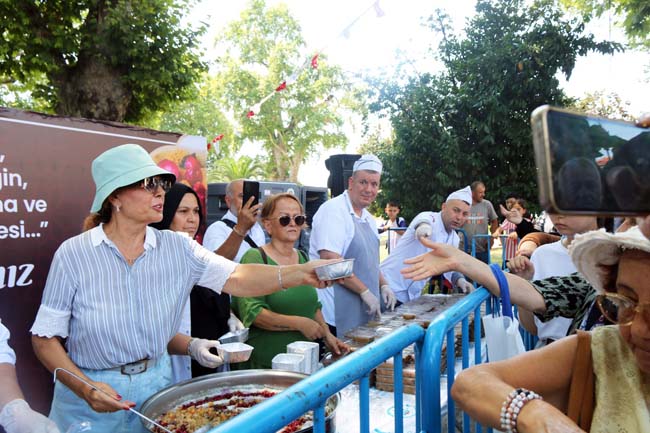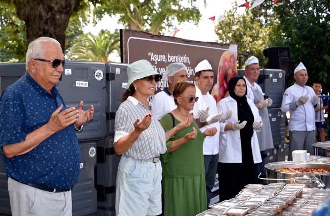 Başkan Posbıyık’ın konuşmasının ardından din görevlileri, günün önemine binaen dua etti. Başkan Posbıyık ve eşi Neriman Posbıyık ile meclis üyeleri ve başkan yardımcıları kazanların başına geçerek vatandaşlara aşure servisi yaptı. Aşureleri alan vatandaşlar Başkan Posbıyık’a ‘Allah kabul etsin’ diyerek teşekkür ettiler.