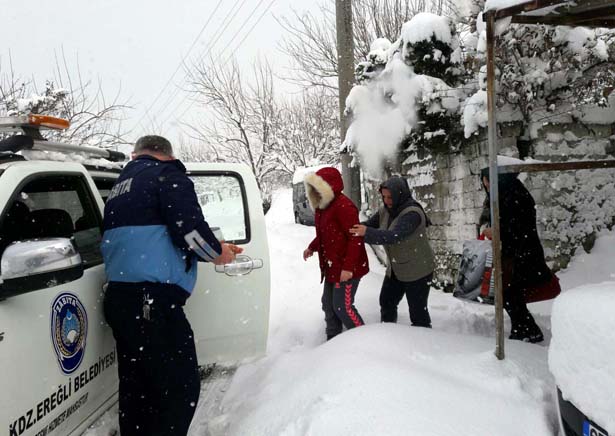 Karla mücadele konusunda etkin rol oynayan Karadeniz Ereğli Belediyesi'nin İtfaiye ve Zabıta Müdürlüğü'nden oluşan ekipler, 24 saat görev başında.