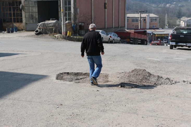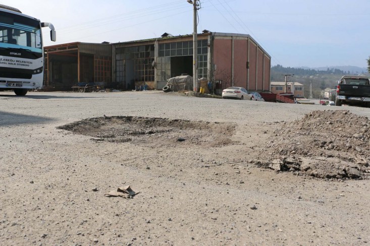 Zonguldak'ın Ereğli ilçesi Belen Sanayi Sitesi esnafı köstebek yuvasına dönen ve araçların geçişinde ortaya çıkan tozdan kurutulmak için belediyeden yollara asfalt dökülmesini istedi.