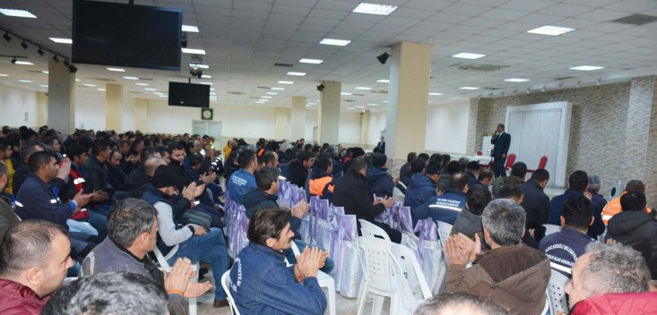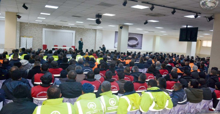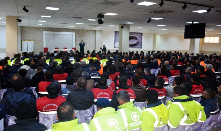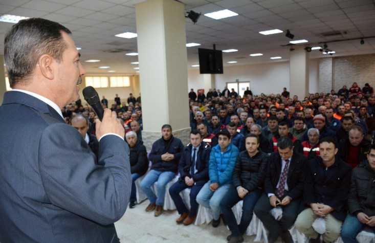 işçileri ile Belediye Düğün Salonu'nda bir araya geldi.