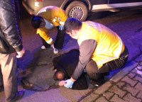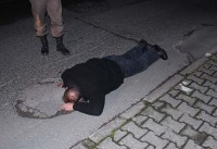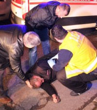 Olay ilçeye bağlı Sarıkorkmaz Mahallesinde meydana geldi. Alınan bilgiye göre, yoldan geçen vatandaşlar yerde hareketsiz yatan bir kişi görünce durumu polise bildirdi. Jandarma komutanlığının hemen önünde yatan ve isminin Mustafa A. (52) olduğu öğrenilen adamın yanına gelen Jandarma komutanları konuşturmaya çalıştı. Kendisinin arabadan atıldığını söyleyen Mustafa A. için sağlık ekiplerine haber verildi.Olay yerine gelen sağlık ekipleri ve polis, yaşlı adamı sedyeye alan sağlık ekipleri polis ve vatandaşların yardımı ile ambulansa alınarak hastaneye kaldırdı. Çevrede güvenlik kamerası araştırmasına başlayan polis, hastanede kendine gelen Mustafa A. nın yanına giderek kendisini kimin arabadan attığını öğrenmeye çalıştı. Mustafa A. kendisinin arabadan atılmadığını, yolda giderken yere düşüp kaldığını söylemesi üzerine ekipler arama çalışmasını bıraktı. Mustafa A. nın hastanede ki tedavisinde 3,20 promil alkollü olduğu ve tedavisinin tamamlanmasının ardından evine gönderileceği öğrenildi.